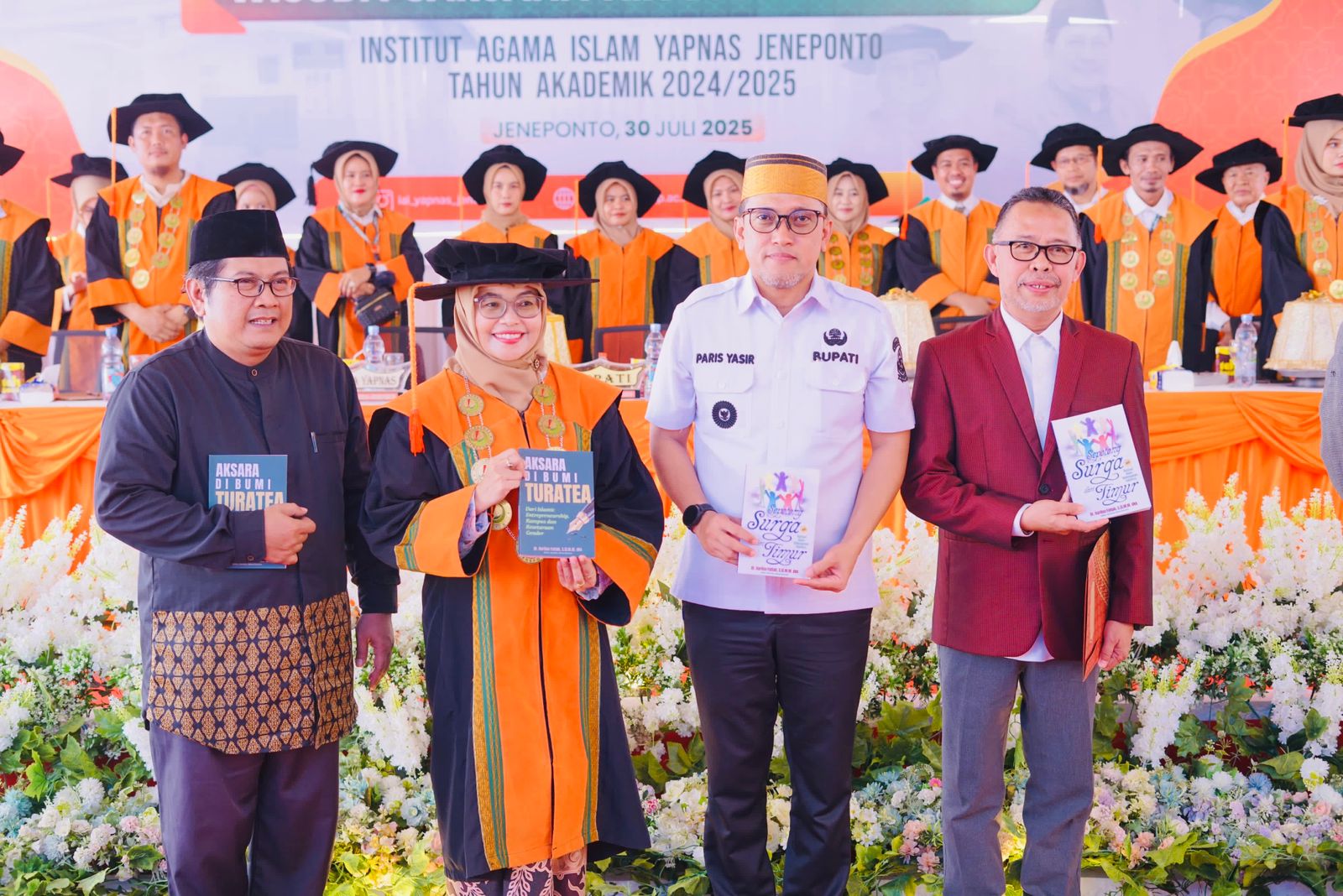 Bupati Jeneponto, Serahkan Penghargaan Kepada Bachtiar Adnan Kusuma, Mentor Menulis Buku di Wisuda STAI YAPNAS