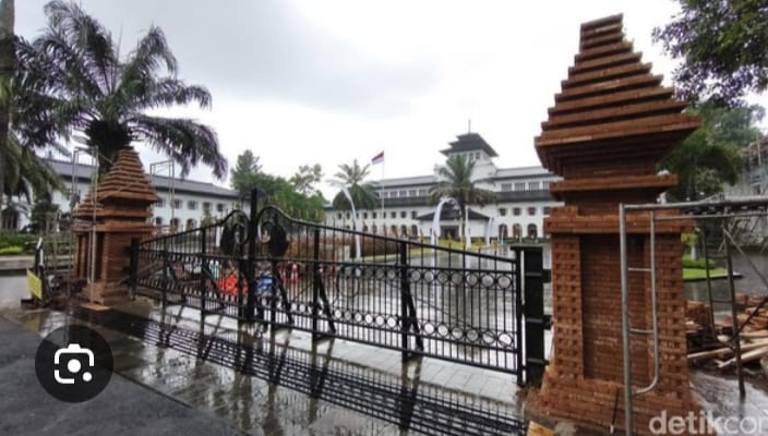 Diberitakan, biaya untuk menduplikasi dua gapura era Kerajaan Majapahit sebagai akses masuk ke kantor Gubernur Jawa Barat itu sekitaran Rp3,9 miliar dari APBD.