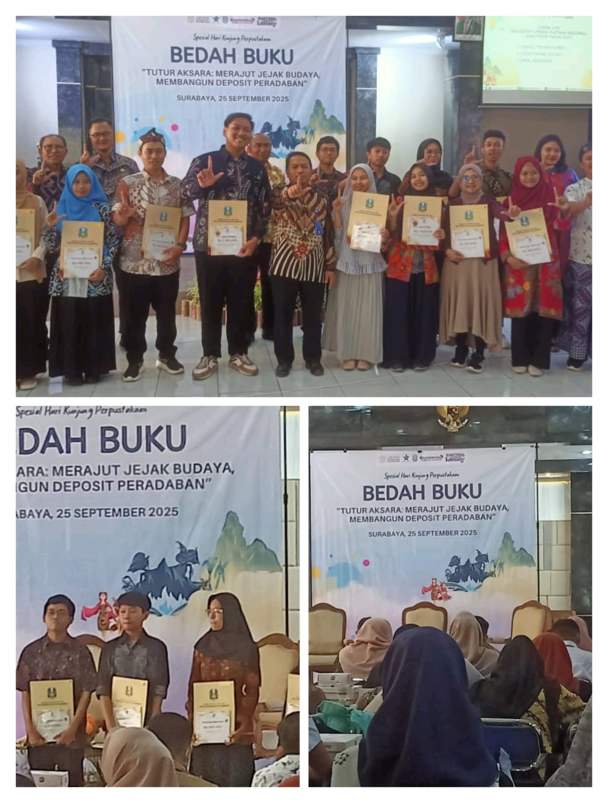 SURABAYA, BANDUNGPOS--Pada Kamis, 25 September 2025 Dinas Perpustakaan dan Kearsipan Provinsi Jawa Timur dalam rangka Hari Kunjung Perpustakaan mengadakan Bedah Buku “ Tutur Akasara : Jejak Budaya, membangun Deposit Peradaban, bertempat di Aula Graha Pustaka Lantai 2 Dinas Perpustakaan dan kearsipan Provinsi jawa Timur.