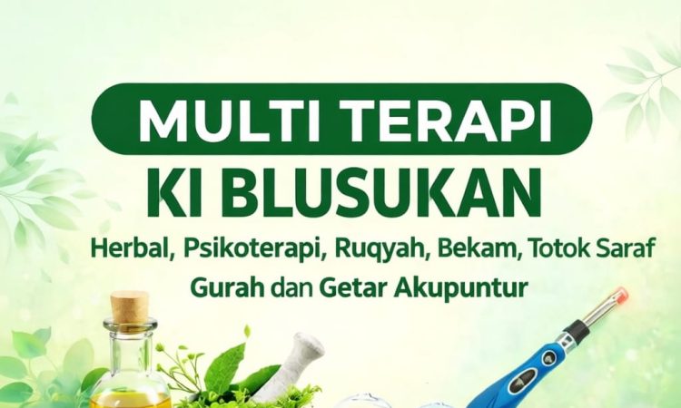 Multi Terapi Ki Blusukan menawarkan beragam metode penyembuhan, mulai dari pengobatan herbal, psikoterapi, ruqyah syar’iyyah, bekam, totok saraf, gurah, hingga getar akupunktur. Layanan ini siap menangani berbagai keluhan kesehatan, baik yang bersifat medis maupun non-medis (kecuali patah tulang dan buntu usus), guna mengembalikan kebugaran dan keseimbangan tubuh pasien secara menyeluruh.
