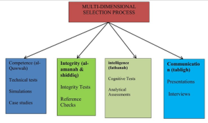 Dengan kata lain dari perspektif Syariah, konsep-konsep seperti al-quwwah (kompetensi) dan al-amanah (integritas), bersama dengan nilai-nilai seperti shiddiq (kejujuran), tabligh (komunikasi/ transparansi), dan fathanah (kecerdasan), memberikan kerangka normatif yang kuat untuk menilai kualitas calon secara holistik.