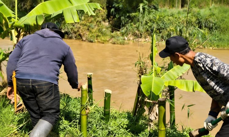 Fokus kegiatan ini tertuju pada titik rawan erosi di sekitar Kampung Boong Nangka yang dinilai paling kritis. Dengan semangat yang tak kunjung padam, warga bekerja maksimal memanfaatkan peralatan seadanya, mulai dari cangkul, karung pasir, hingga bambu, untuk menambal bibir sungai yang tergerus arus. Aksi swadaya ini membuktikan bahwa masyarakat setempat memiliki ketangguhan luar biasa dan tidak mau berdiam diri menunggu bantuan, melainkan bergerak menyelamatkan lingkungan sendiri.